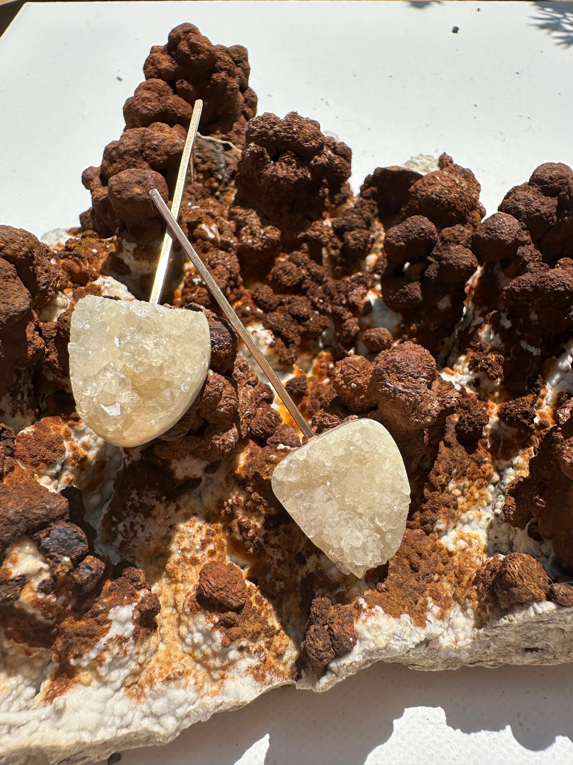 Shimmery druzy quartz with natural intricate bubbles and landscape.