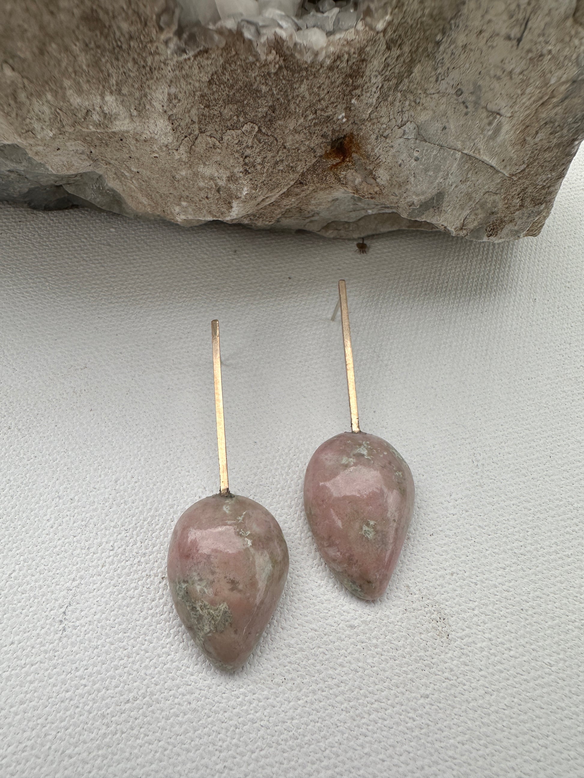 Pink thulite in mint green nephrite jade (sourced Wyoming) on 14K gold filled bar with .925 sterling silver post